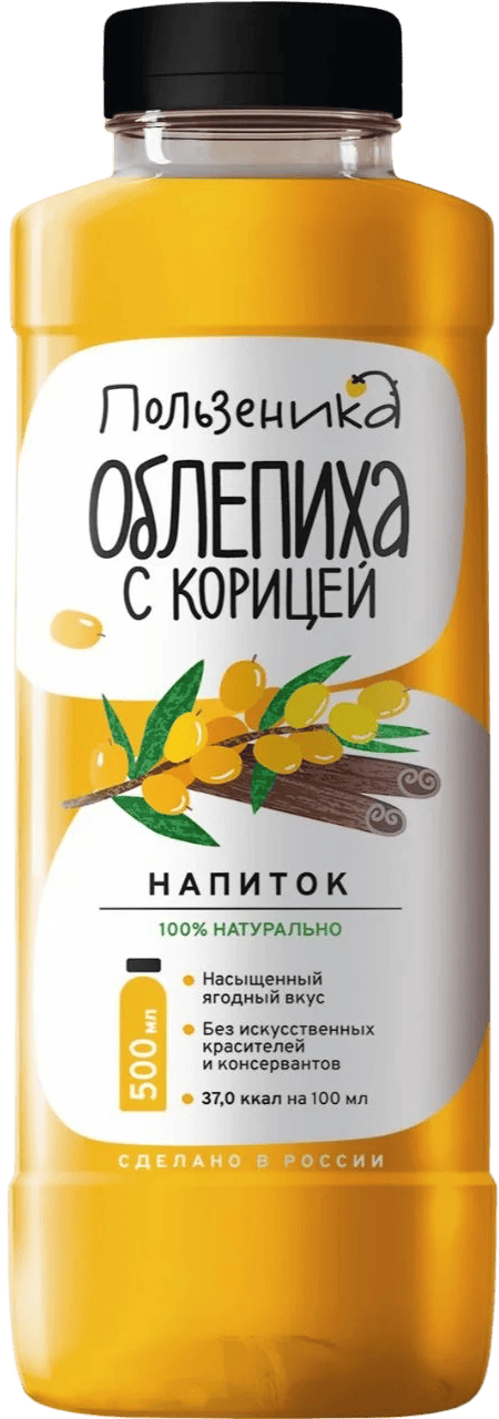 Вода подготовленная, сок прямого отжима из облепихи, сахар, экстракт корицы